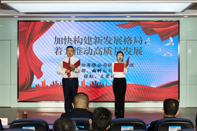 公司供應鏈管理黨支部、面料公司黨支部代表張紅、王榮梓誦讀《加快構建新發(fā)展格局 著力推動高質(zhì)量發(fā)展》。堅持實事求是,融入高質(zhì)量發(fā)展大局;堅持守正創(chuàng)新,拓寬高質(zhì)量發(fā)展路徑;堅持行穩(wěn)致遠,提升高質(zhì)量發(fā)展能力。華紡股份將以高質(zhì)量發(fā)展為目標,引領企業(yè)向更高水平闊步邁進。